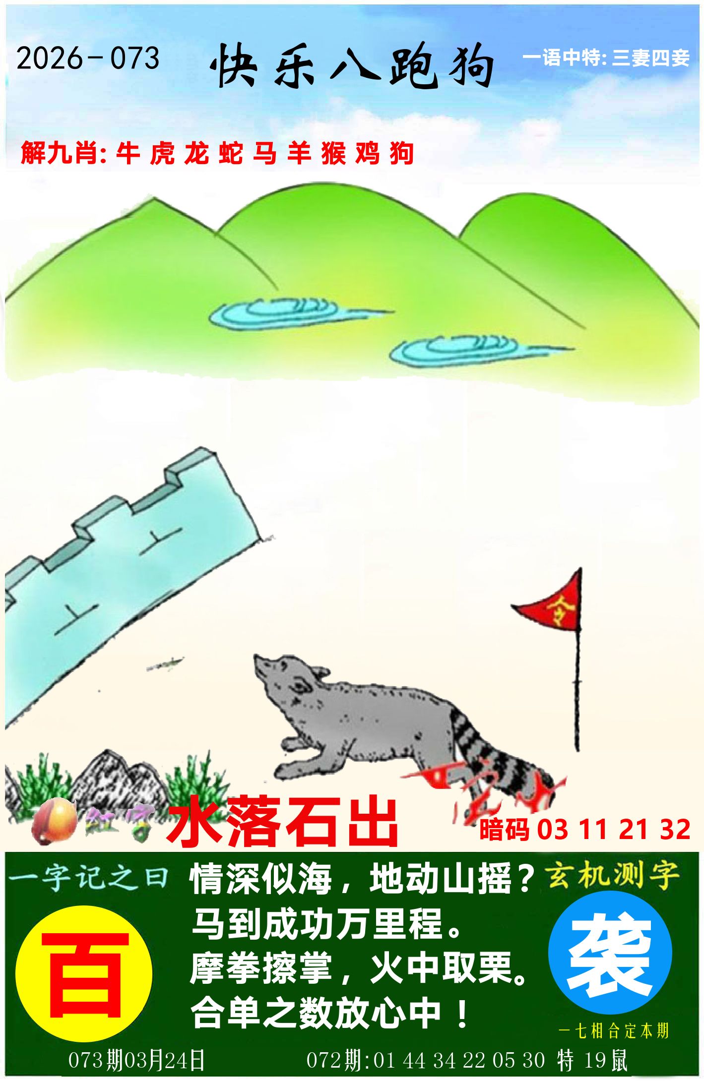 073期单双两肖:双数+猴马开:??准