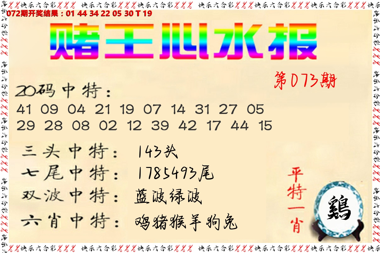 073期平特一尾:7开:??准
